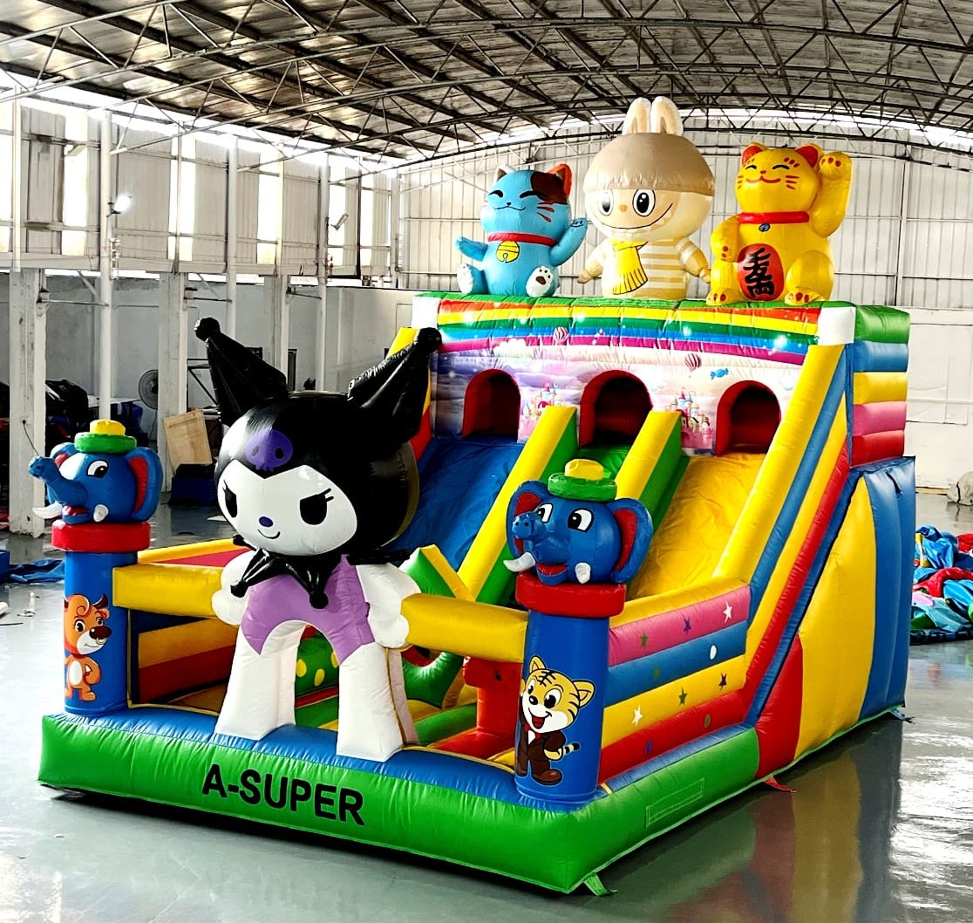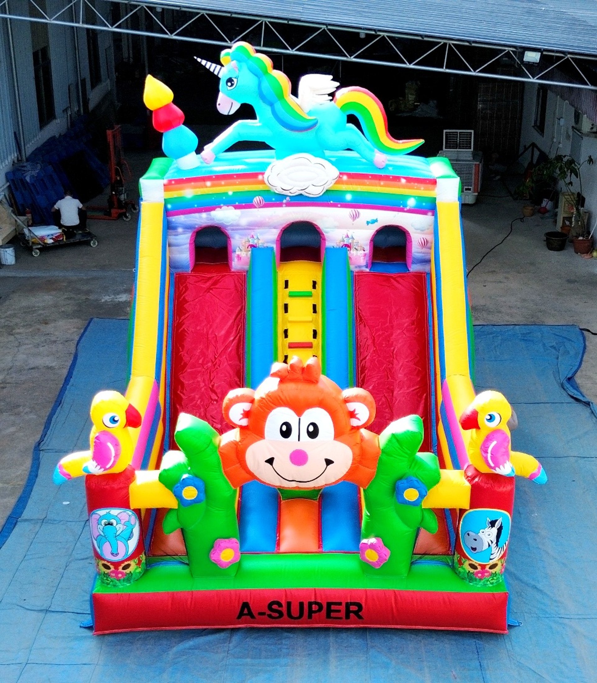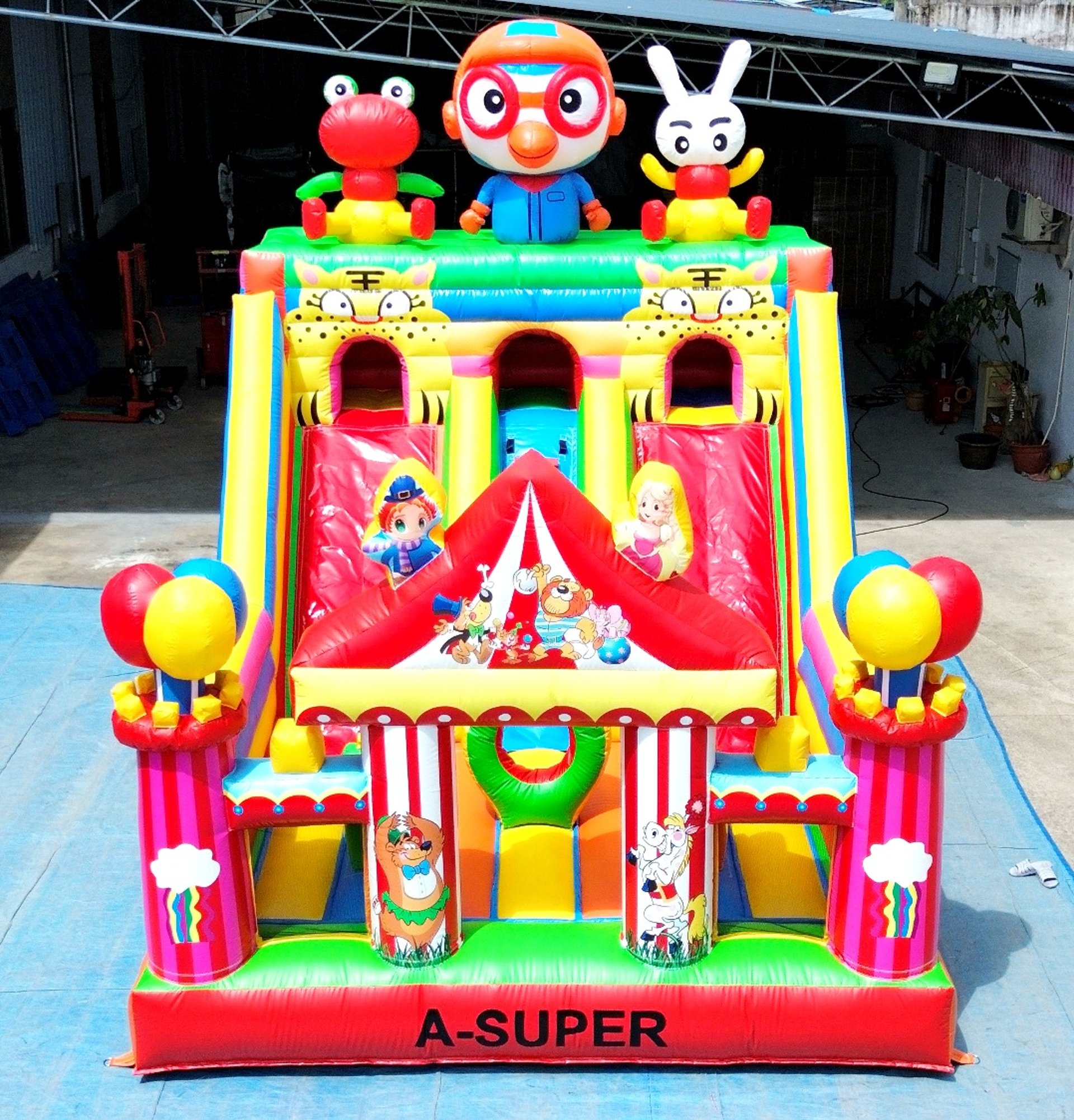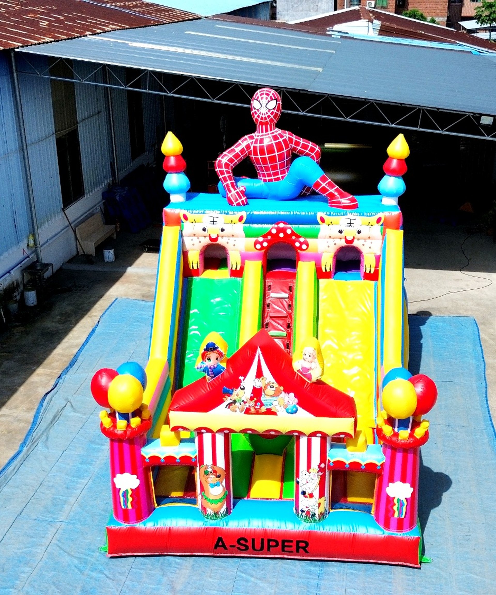 Ukuran 4×6 meter, dilengkapi 1 blower 2400 watt, termasuk 1 liter lem dan kain tambalan. Mendukung custom desain sesuai kebutuhan.