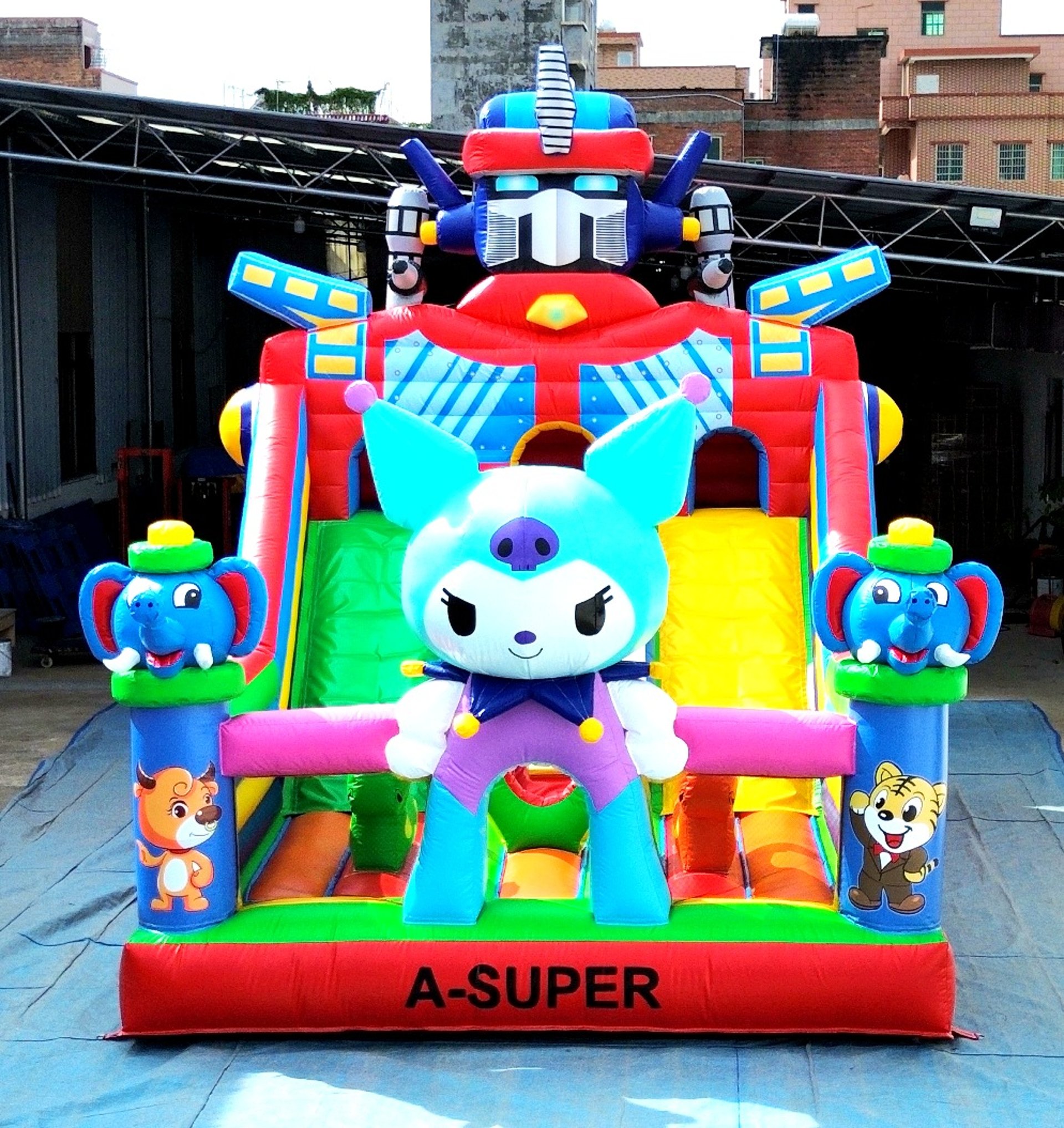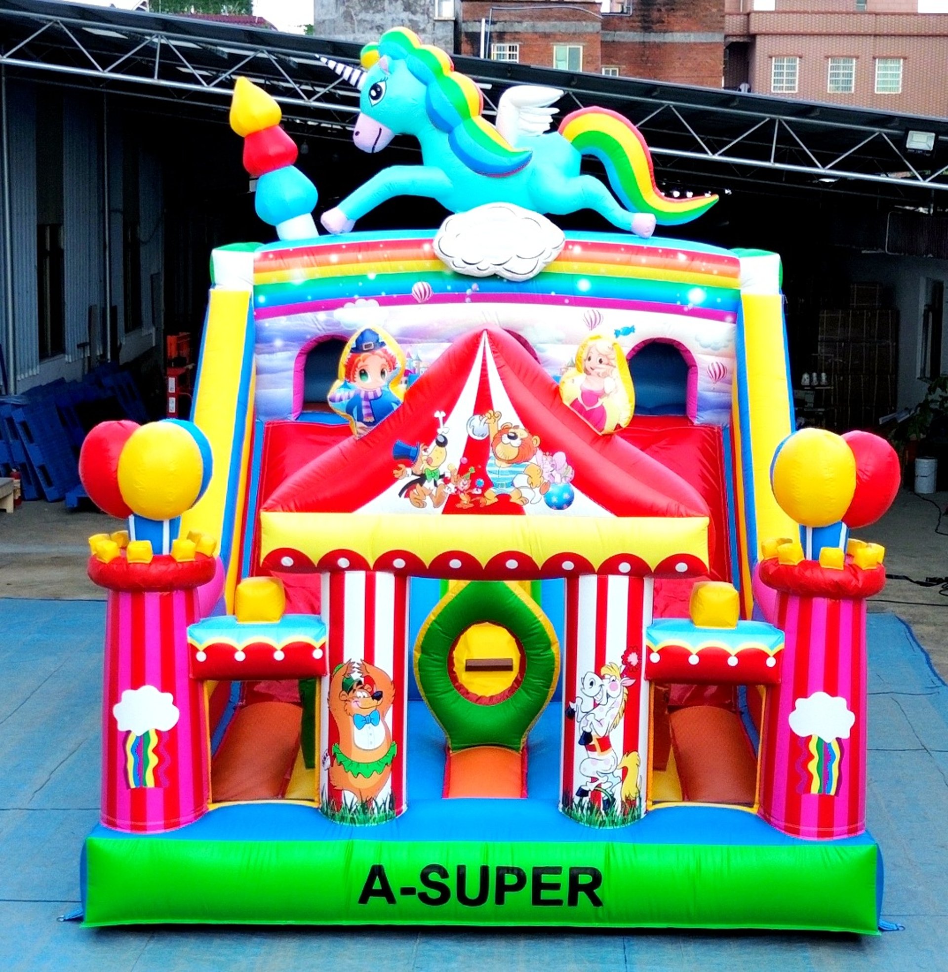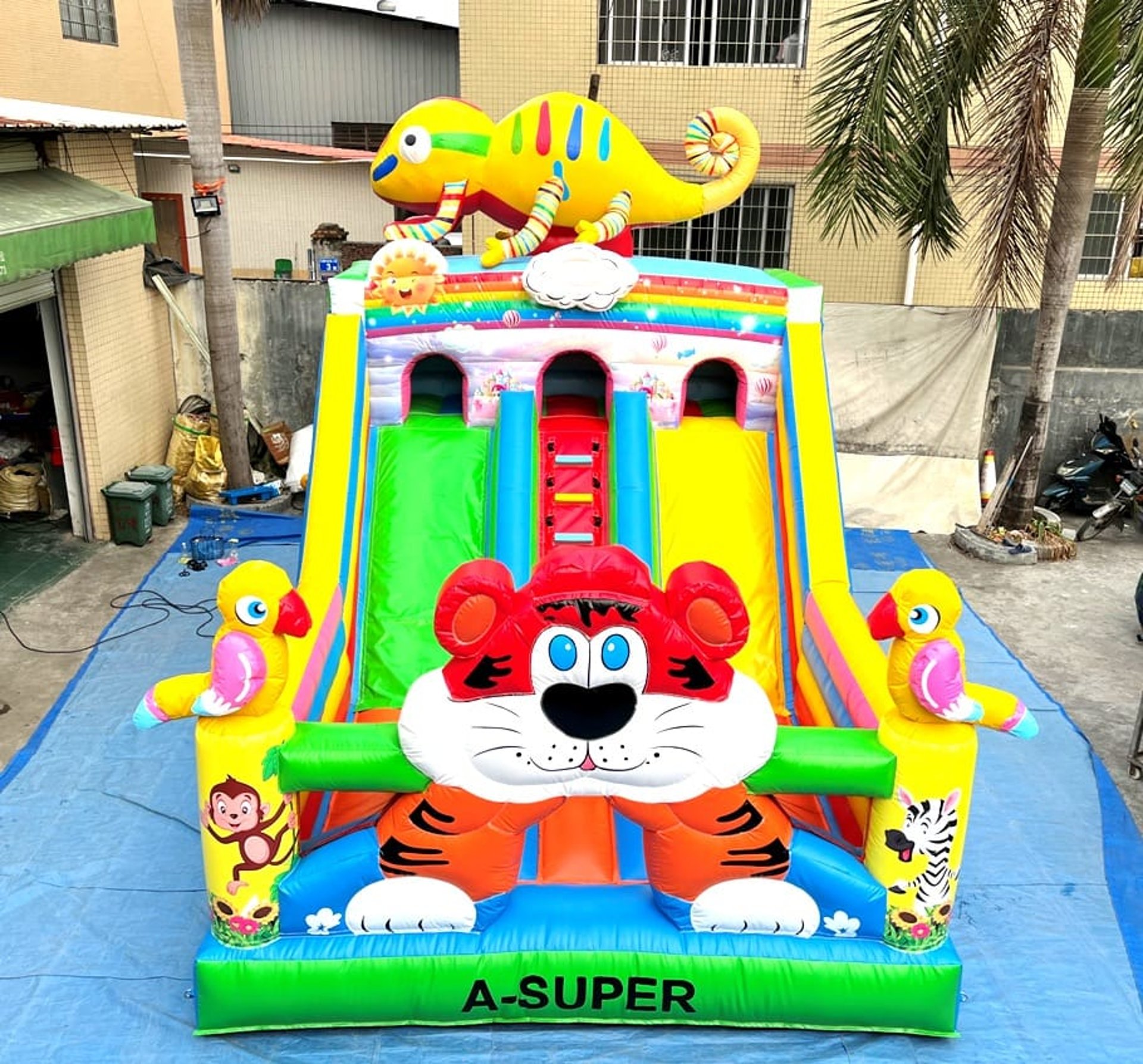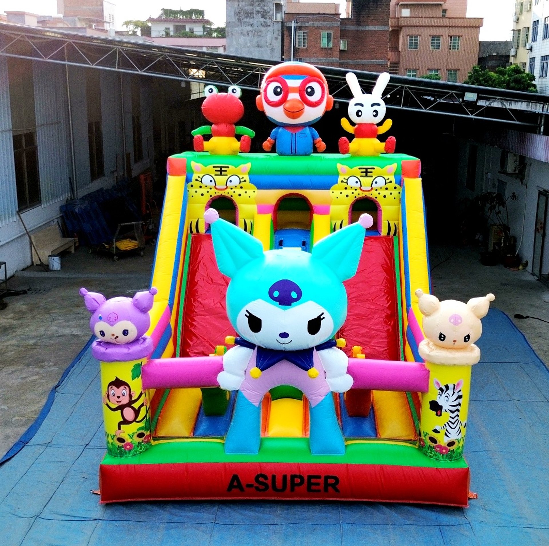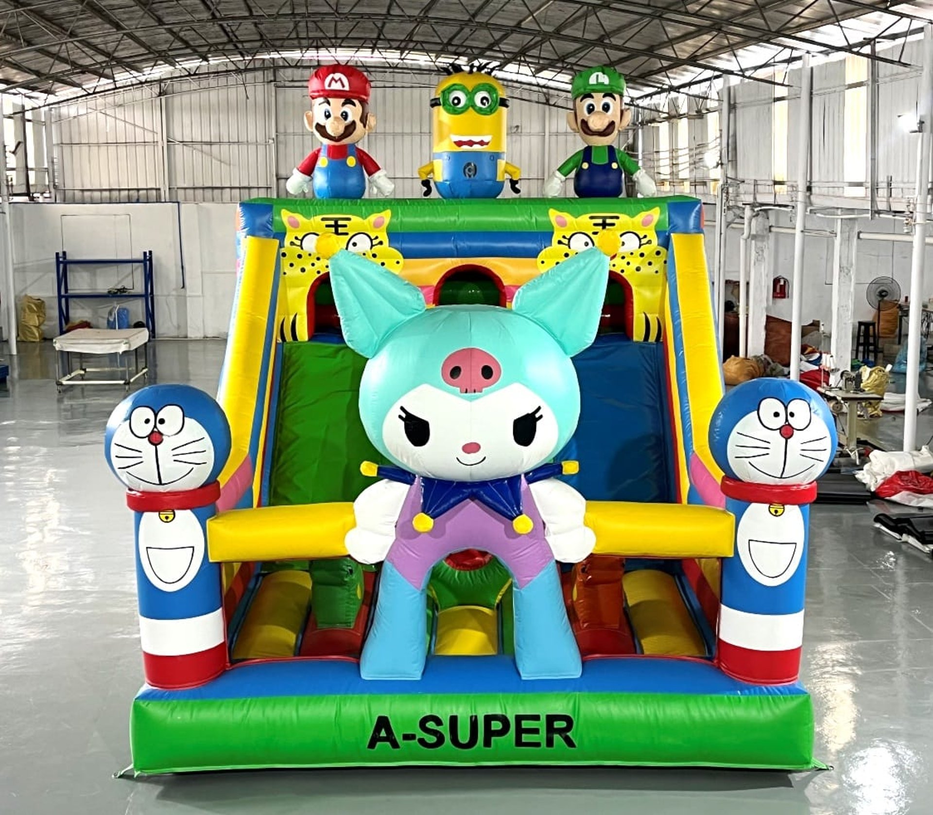 Ukuran 4×6 meter, dilengkapi 1 blower 2400 watt, termasuk 1 liter lem dan kain tambalan. Mendukung custom desain sesuai kebutuhan.