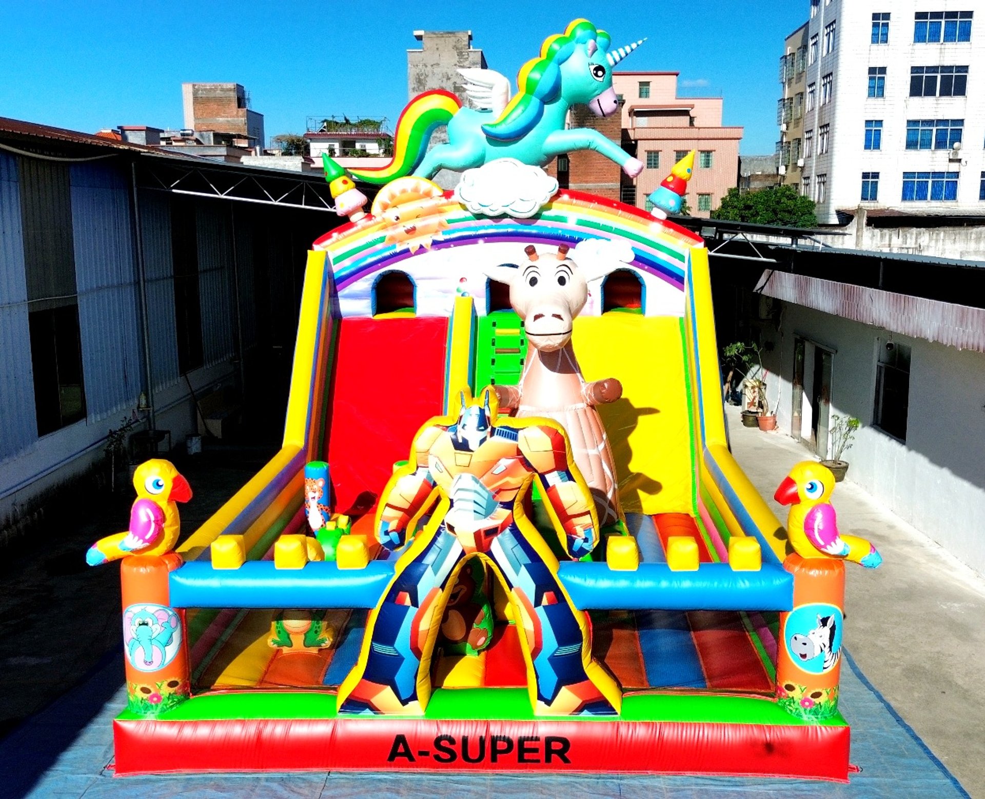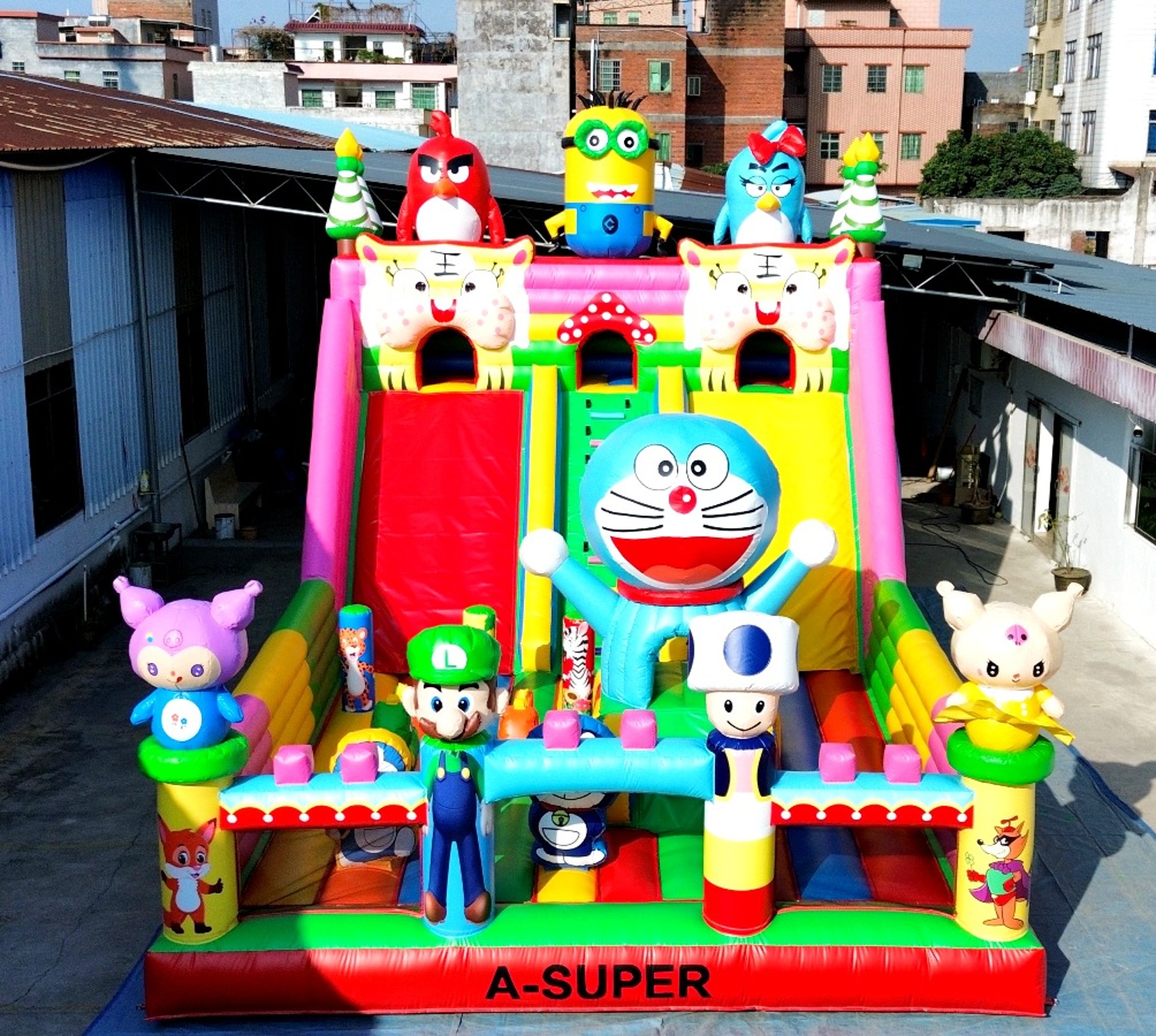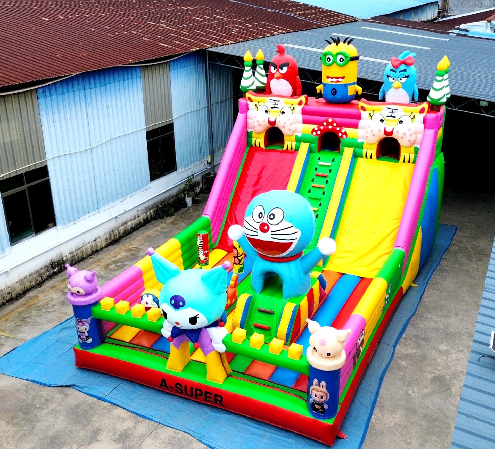 Ukuran 6x10 meter, dilengkapi 2 blower 2400 watt, termasuk 1 liter lem dan kain tambalan. Mendukung custom desain sesuai kebutuhan.