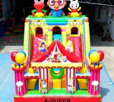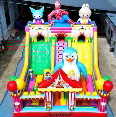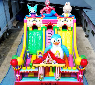 Ukuran 4×6 meter, dilengkapi 1 blower 2400 watt, termasuk 1 liter lem dan kain tambalan. Mendukung custom desain sesuai kebutuhan.